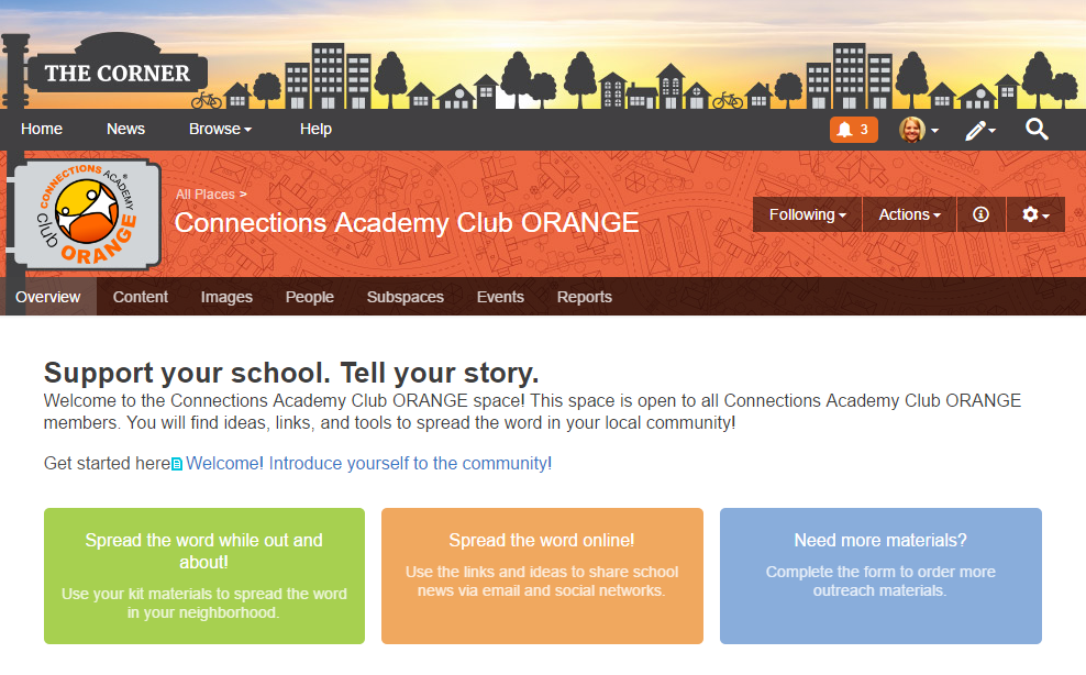 Krista: Jive is about connecting enrolled families and encouraging them to spread the word about their online school experience to others in their local communities. The Corner, our Jive Customer Community, is a nationwide online community for parents and guardians who have students enrolled in Connections AcademyⓇ schools and have joined the parent volunteer club. The Corner is a closed Jive instance that is only available to parent club members.