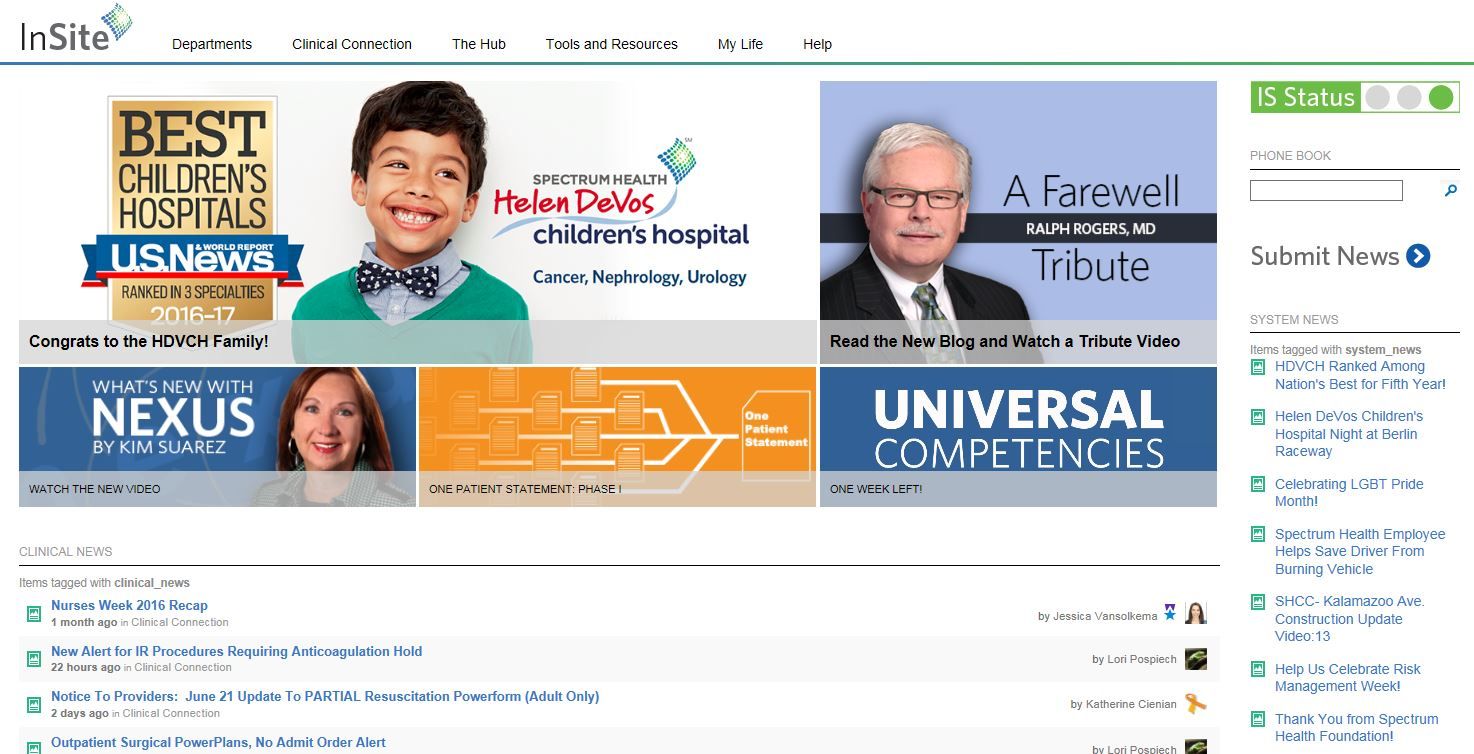 Don: At Spectrum Health, we use Jive as our primary intranet, and are gradually migrating off of legacy systems such as SharePoint. More and more departments are migrating every day, and all of our 200 departments will leverage Jive in some way by the end of the year. Already we’ve seen more than 3,500 sites created, from official departmental “front doors” for the organization, to collaborative sites, affinity groups and others. Our Human Resources space, “My Life” transformed 75 disparate communications channels into a cohesive, one-stop shop on Jive, generating 1.3 million views last year and even winning the 2016 JiveWorld “Transforming HR” award!