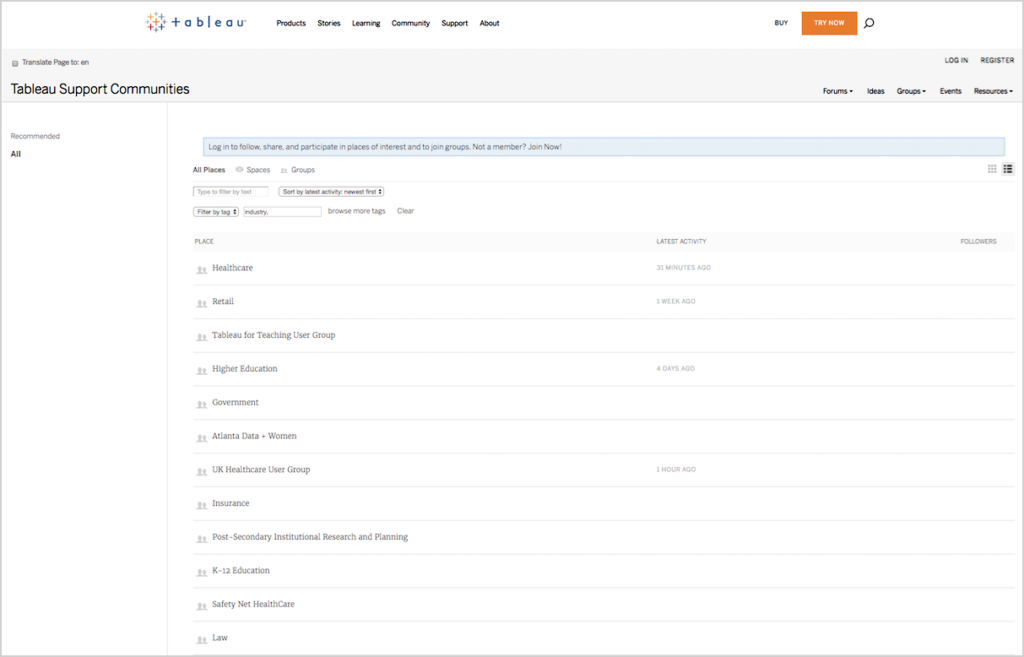 The Tableau Community has support communities for numerous industries